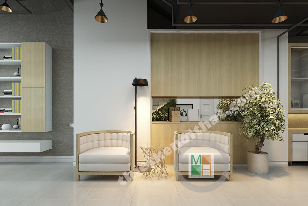 Ý tưởng thiết kế nội thất nhà liền kề kết hợp với văn phòng làm việc là một ý tưởng khá táo bạo nhưng cũng mang đầy tính sáng tạo. Vừa tận dụng được không gian nội thất mà còn rất hợp với mục đích kinh doanh. Ngôi nhà của anh Hùng được cải tạo lại để phù hợp với tiêu chí kết hợp nơi ở với văn phòng làm việc của công ty. Các kiến trúc sư của Morehome đã đưa ra phương án để sự kết hợp này trở nên gần gũi và thuận tiện nhất.