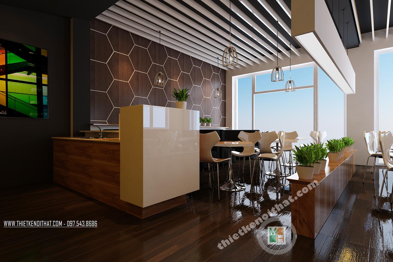 Bên cạnh đó, với việc nắm bắt rõ thị yếu của thực khách kết hợp với mong muốn và ý tưởng của khách hàng, kiến trúc sư đã mở rộng tối đa view hướng ra bên ngoài. Không gian thiết kế xanh với các chậu cây nhỏ, xinh đặt gọn gàng tạo thành vách ngăn khéo léo giữa lối đi cũng là điểm nhấn vừa đảm bảo yếu tố thẩm mỹ vừa mang lại cảm giác thư giãn và nhẹ nhàng cho thực khách.