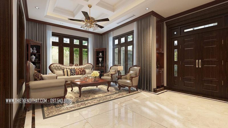 Mẫu bàn ghế sofa gỗ óc chó đẹp cho phòng khách biệt thự sang trọng, tôn lên không gian sống đẳng cấp cho gia chủ